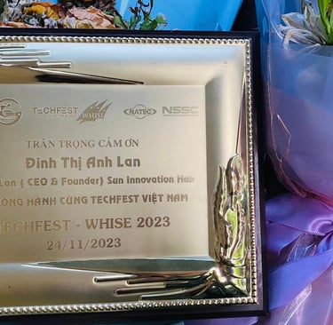 Thạc sĩ Sunny Lan, CEO & Founder của SUN INNOVATION HUB giới thiệu dự án tại sự kiện TECHFEST WHISE 2023 diễn ra tại TP.HCM - Việt Nam.